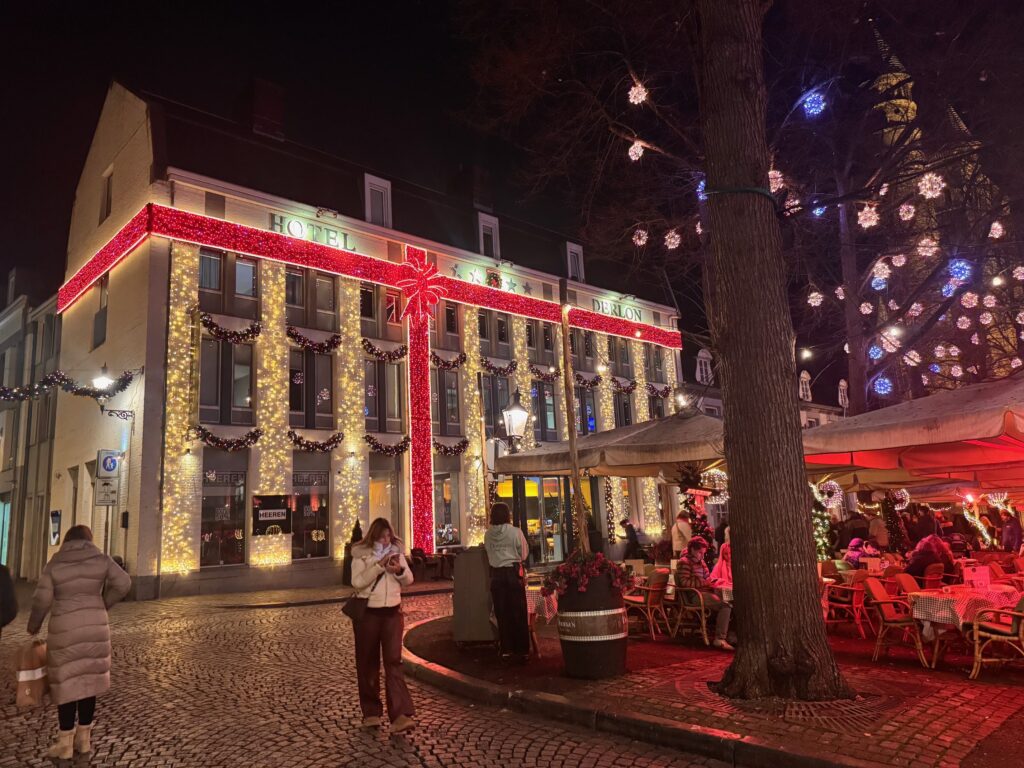 Terwijl bijvoorbeeld de meest chique modehuizen in Parijs in de feestmaand ook met dat soort uitbundige versiersels aan hun gevels uitpakken, vonden sommige Sjengen het toch wat overdreven. Want: ‘Mestreech moet wel Mestreech blieve’. Internationaal maar ook dorps, een lastige combinatie.