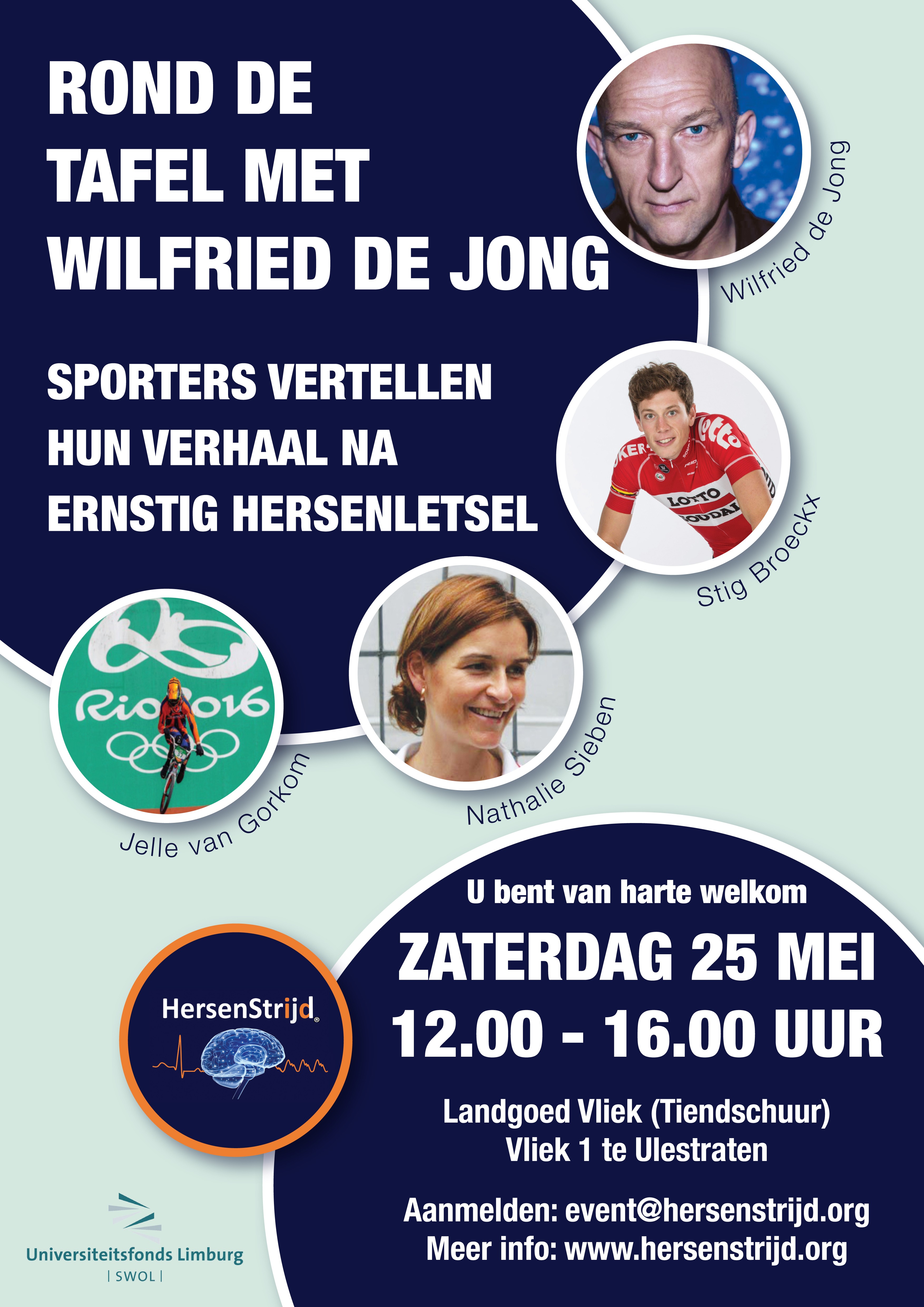 Tijdens het Ronde Tafel Gesprek horen gasten het persoonlijke verhaal van drie sporters. De fietsers Jelle van Gorkom, Stig Broeckx en Nathalie Sieben schuiven aan met hun partner of familielid. Ariës: ,,Zij vertellen over de angst en onzekerheid in de eerste opnameperiode. Wat betekent het als je niet meer kunt doen dan afwachten totdat de hersenzwelling van je zoon of partner afneemt? De familie van Stig kon pas zes maanden na het ongeval eindelijk geloven dat hij überhaupt nog wakker zou worden. Het zou heel fijn zijn als artsen in een eerder stadium meer behandelmogelijkheden hebben.”
