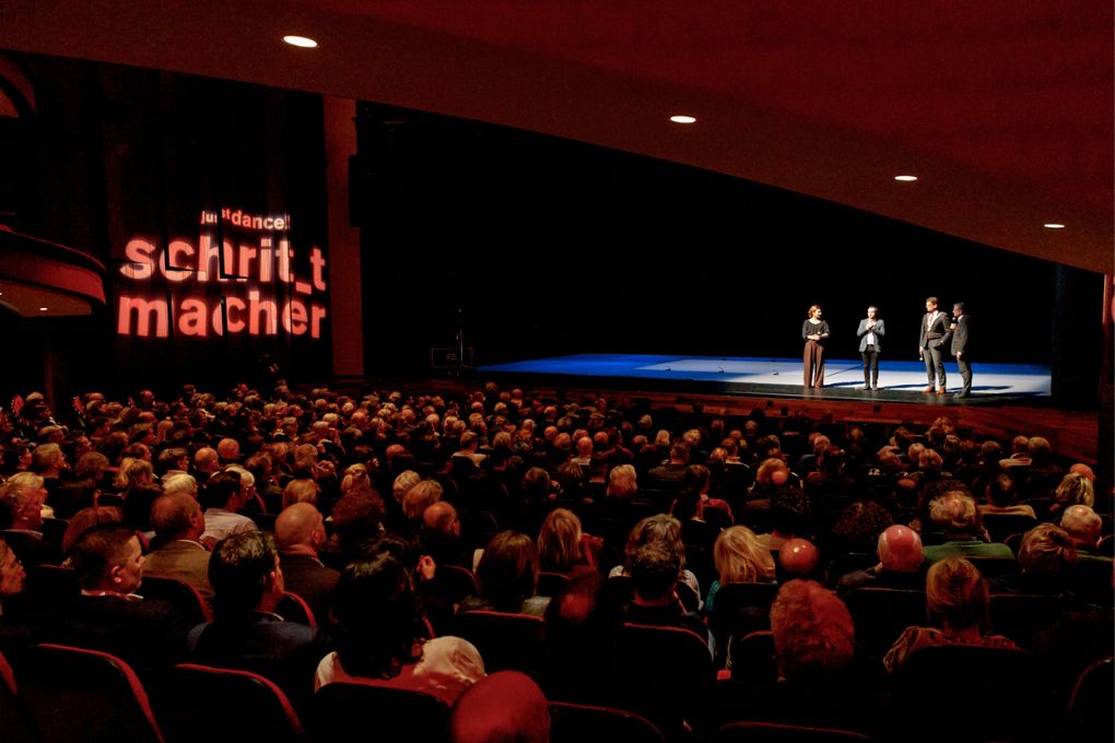 Omdat hij hopeloos vaststaat in een file is het daarom Bas Schoonwoerd, directeur-bestuurder van Stichting StEP by StEP die de honneurs waarneemt om een goedgevulde zaal dansliefhebbers te verwelkomen. In goed gezelschap overigens, want niet alleen de oud-theaterdirecteur van PLT maar ook diens opvolger Janine Dijkmeijer, de burgemeester van Heerlen Roel Wever en cultuurwethouder Jordy Clemens spreken voorafgaand aan de openingsvoorstelling mooie woorden over het dansfestival dat een belangrijk visitekaartje is geworden voor stad en (Eu-) regio. Artistiek en politiek gezien vervult schrit_tmacher een belangrijke rol als ‘verbinder’ tussen de speelsteden Heerlen, Kerkrade, Aken en Eupen stellen de bestuurders. En het resultaat mag er ook zijn wordt meermaals aangestipt: deelname van grote internationale dansgezelschappen met voorstellingen, op vaak bijzondere locaties. Ook de randprogrammering met lezingen, workshops, film en nog veel meer wordt door hen van harte aanbevolen.‘Dansland’ Canada staat centraal en de volle breedte van de moderne dans komt in het programma aanbod.