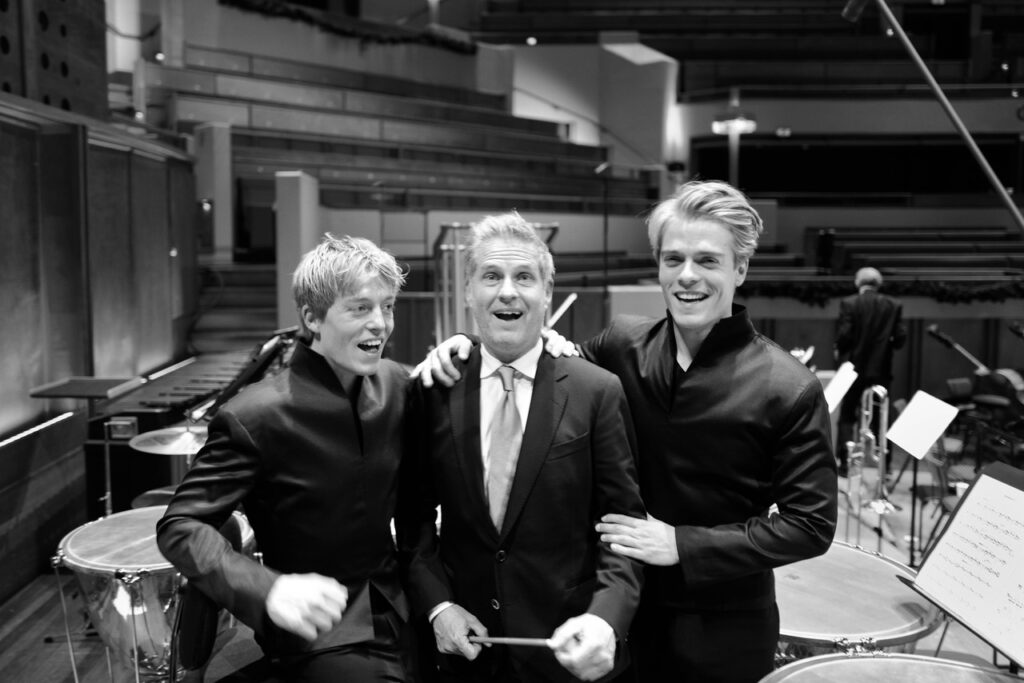 Vader Paul speelde al enkele keren samen met zijn zoons. „De eerste keer was dat met de Radio Kamer Filharmonie in Tivoli Vredenburg in Utrecht onder leiding van Jaap van Zweden. Dat was héél spannend. Voor zo’n volle, grote zaal, terwijl de jongens pas tien en dertien waren. Ze konden het stuk wel spelen, maar waren ze er ook mentaal genoeg op voorbereid? Of zouden ze last krijgen van een black-out? Het werd uiteindelijk een geweldig concert en in feite ook een doorbraak. Van Jaap van Zweden kregen ze de kans, die momenten en die mensen heb je nodig.”