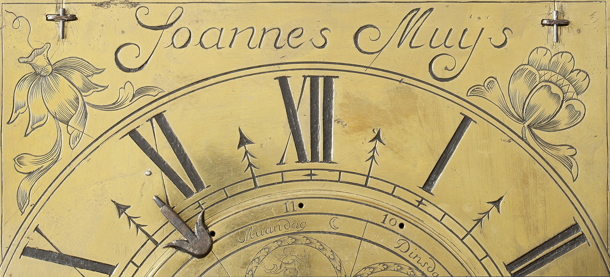 Op het frame van het uurwerk van de Maastrichtse lantaarnklok pronkt met sierlijk gegraveerde letters de signatuur Joannes Muijs fecit 1656 Mosam. Mosam verwijst naar Mosam Trajectum, de Latijnse naam voor de stad Maastricht. Maastricht staat bekend om zijn ambachtelijkheid en virtuositeit op het gebied van kunstnijverheid uit de zeventiende en achttiende eeuw. Kunsthandwerklieden, zoals zilversmeden, wapen- en klokkenmakers werden opgeleid binnen samenwerkingsverbanden van ambachtslieden. Deze zogeheten gilden bewaakten de kwaliteit van het werk en stimuleerden de vervaardiging van voortreffelijke gebruiksvoorwerpen. Rijke Maastrichtenaren kochten stijlvolle uurwerken bij vooraanstaande klokkenmakers om hun maatschappelijke positie uit te dragen. In hun woningen herinnerden deze mooie tijdmeetinstrumenten hen aan de magie en kostbaarheid van tijd. Aan het einde van de zeventiende eeuw was het huisuurwerk een hoogontwikkeld product dat ook toegankelijk werd voor de burgerij.