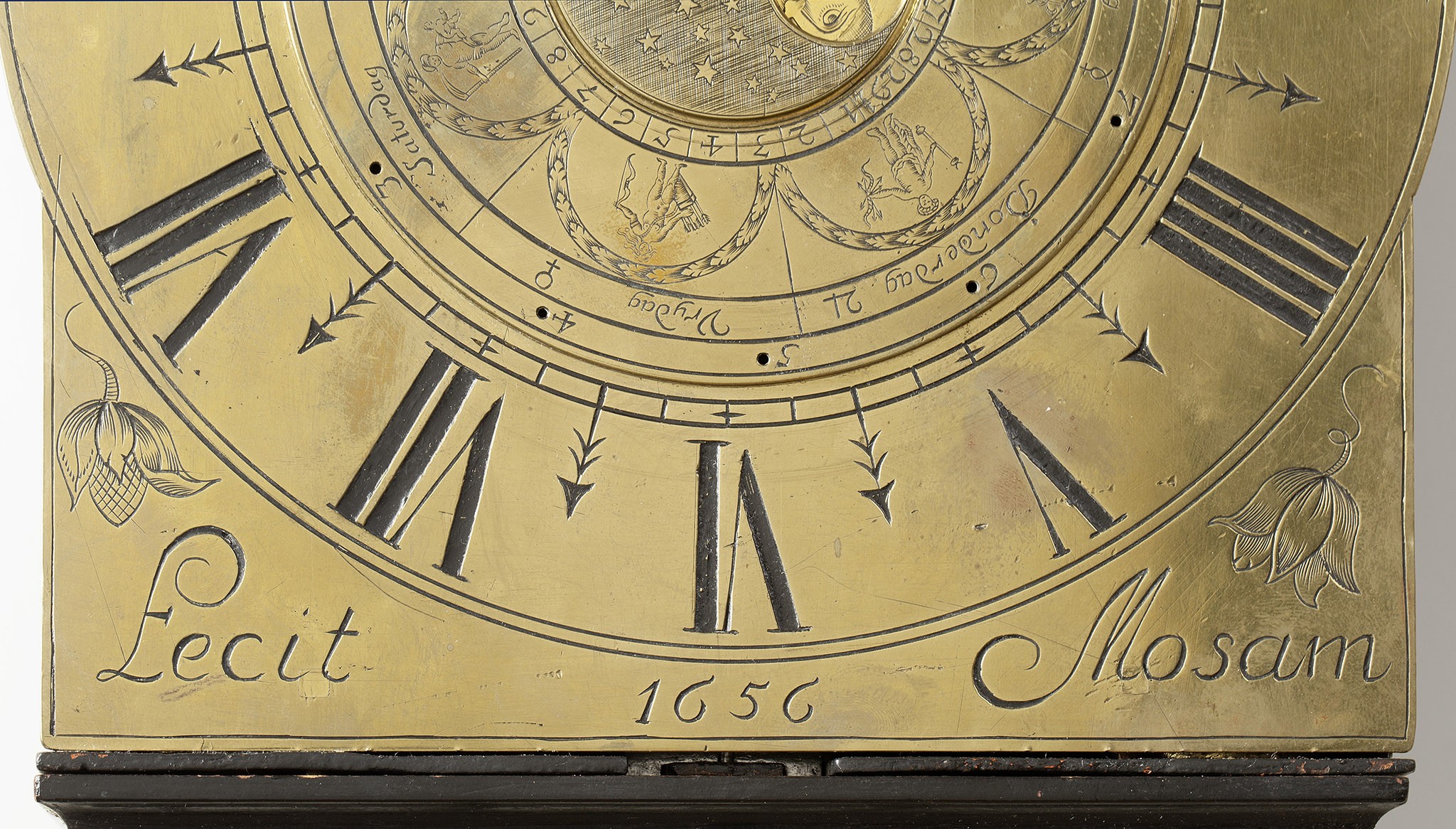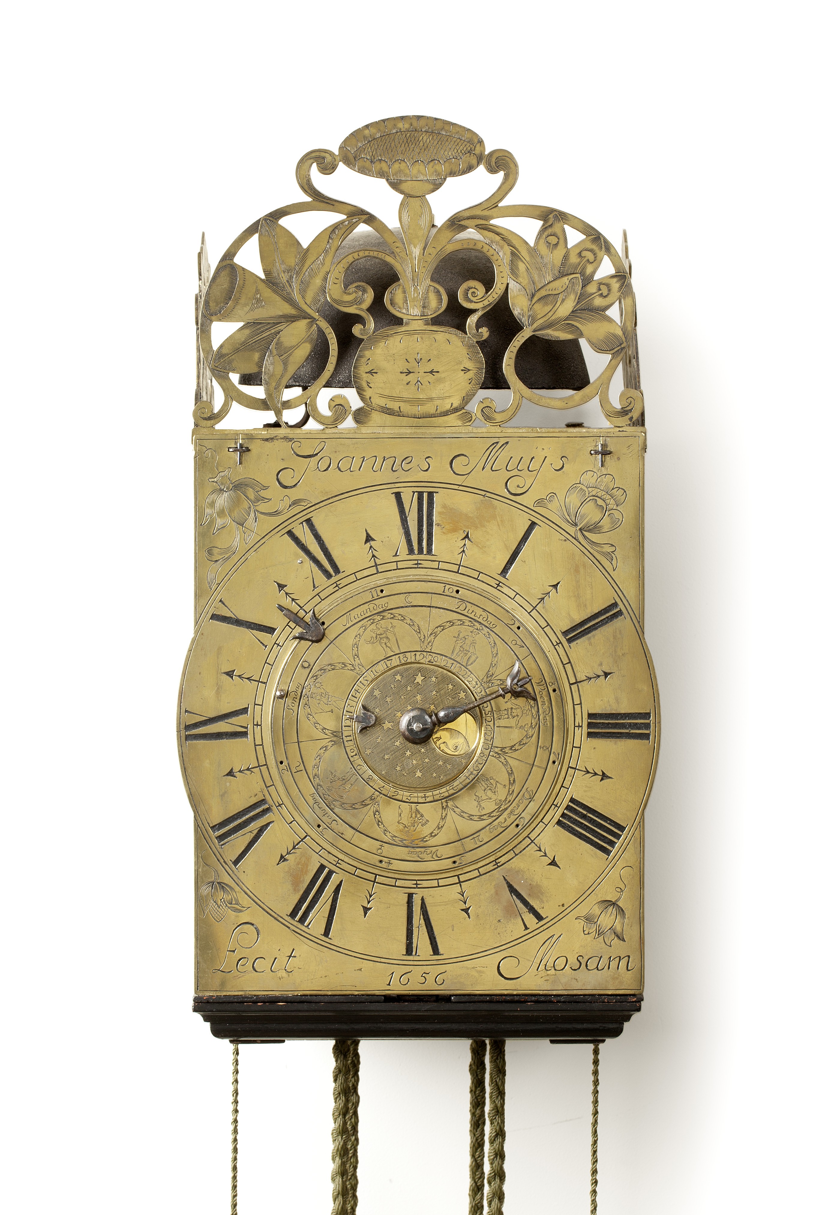 De astronomische aanduidingen maken de zeventiende-eeuwse verwondering over het verloop van de tijd en de hemellichamen voelbaar. Het frame van het uurwerk wordt bekroond door een bel, omringd door drie opengewerkte belhekken, waarvan de voorste is gegraveerd, voorstellende een urn met bloemen. Klokken uit Zuid-Limburg, in het bijzonder Maastrichtse uurwerken, kom je in de Nederlandse antiekhandel bijna niet meer tegen.