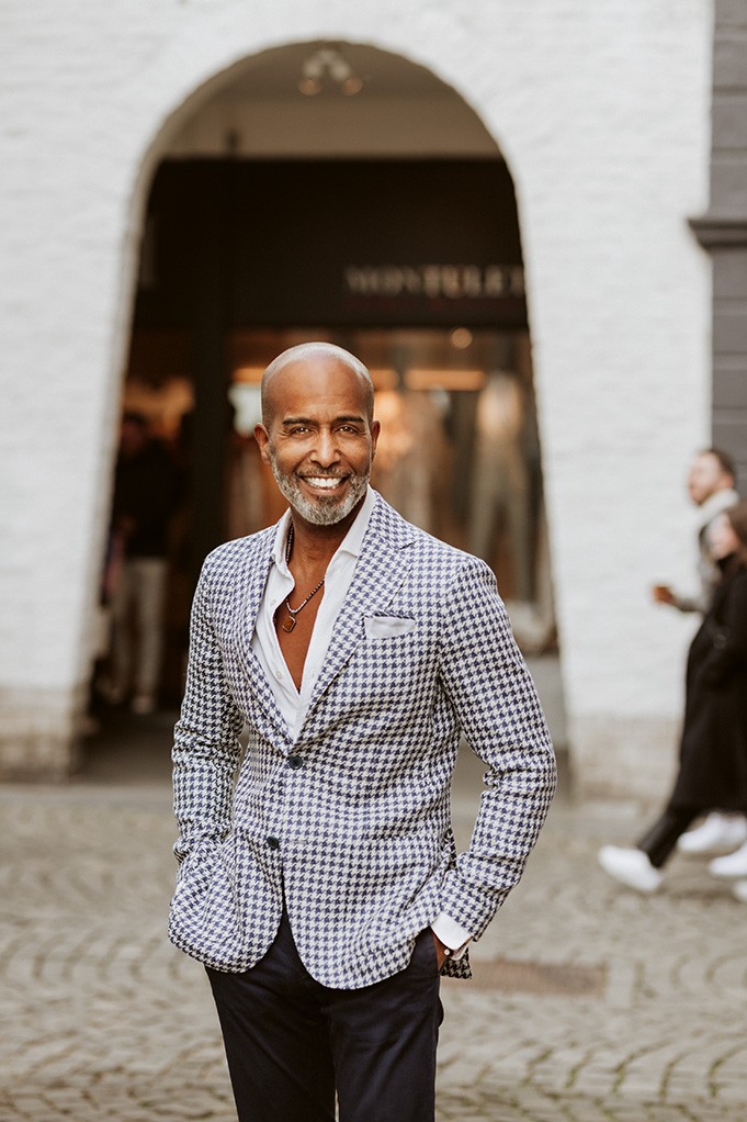 „Laatst zei een klant: ‘Een man is altijd zoekende totdat hij zijn kleermaker heeft gevonden’. Dat vond ik zo treffend. Ik kom regelmatig bij vrienden thuis en kijk wat er in hun kast hangt en wat er ontbreekt. Ik laat ze zien hoe vaak ze een colbert kunnen combineren. Dat maakt mijn vrienden dankbaar; ze zijn zo blij als ze iets nieuws ontdekken met items die ze al in hun kast hebben hangen.” Hij kan het weten, want Ruby Cathalina draagt zijn items vaak en goed: ,,Mooie spullen moet je niet in de kast laten hangen.” Daar hebben we de tijd niet voor