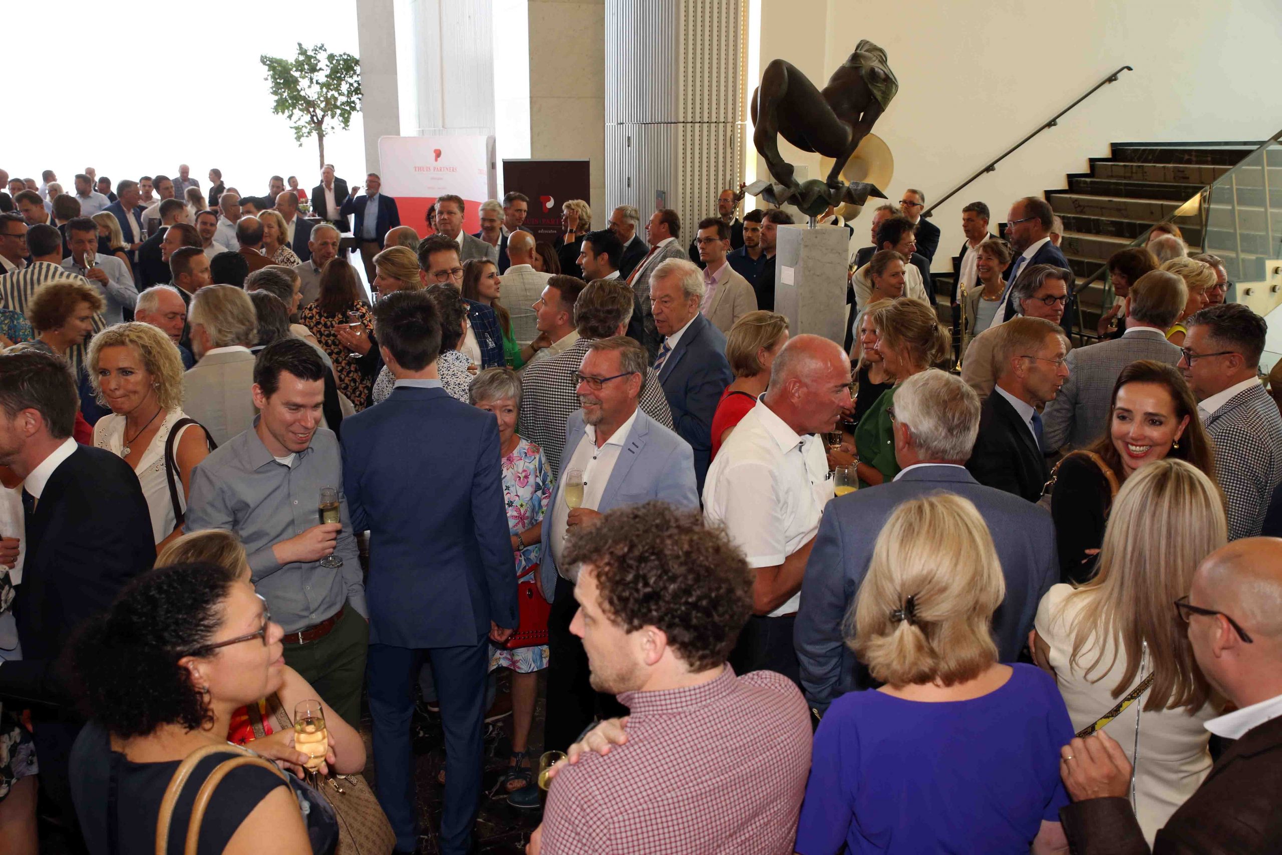 Persoonlijke gesprekken, kwaliteit leveren, maar altijd met een vleugje humor vormen de rode draad door het bestaan van Thuis Partners en dus ook door het programma van het jubileumfeest. De ‘oude’ maatschap keek, met gepaste trots, terug op het verleden. Waarbij de huidige maatschap juist een blik op de toekomst wierp. En in die toekomst is werk genoeg, luidde de conclusie. Mensen en bedrijven zullen in de toekomst altijd juridisch advies nodig hebben, ongeacht alle vormen van digitalisering waarmee de samenleving nog te maken krijgt.