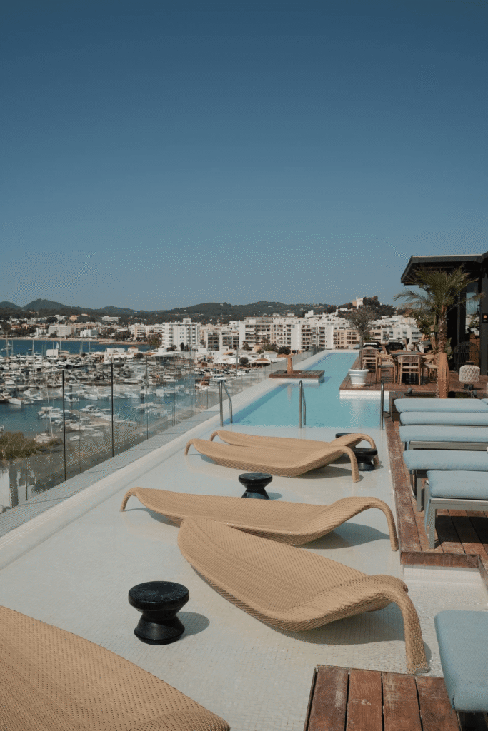 Mijn hoteltip voor wie het eiland in stijl wilt ervaren: Aguas de Ibiza. Dit luxe boetiekhotel in Santa Eulalia heeft een modern mediterraan design, een infinity pool en een rooftop bar met uitzicht over de haven en de zee. Hier draait alles om pure verwennerij: van de spa (de grootste op het eiland, trouwens) tot de verfijnde restaurants.