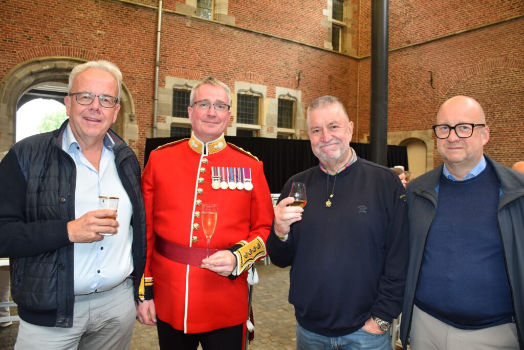 In de VIP- ruimte ging het er iets rustiger aan toe. Daar werd, onder het genot van bier, wijn en natuurlijk whisky, genetwerkt. Immers heel wat politici en zakenlui tekenden er present. Top of the Bill bleek de ‘Band of the Grenadier Guards’, dé elite van de Britse infanterie. Met hun typische berenmutsen en rode uniformen zorgden ze voor extra cachet.