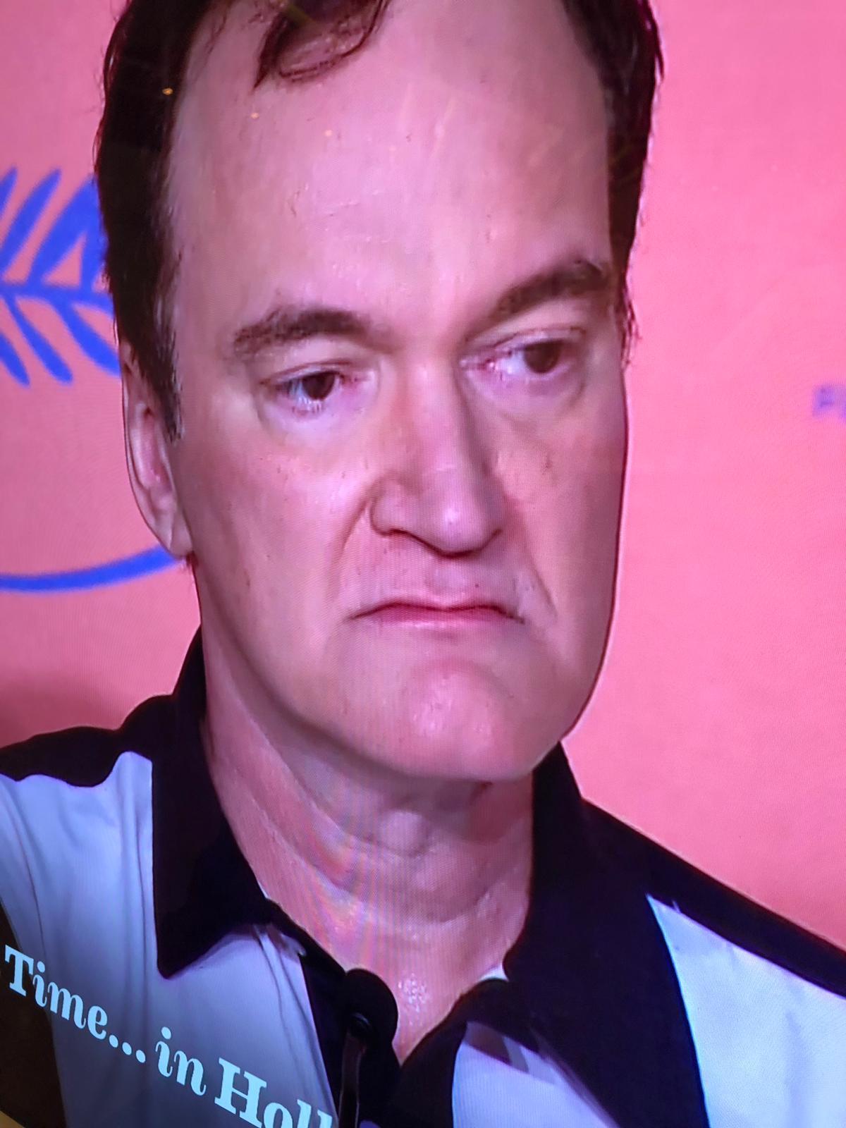 Regisseur Tarantino is tijdens zo’n persconferentie een en al enthousiasme. Maar ook heel gedecideerd. Als de journaliste van de New York Times vraagt waarom actrice Margot Robbie zo weinig dialoog heeft gekregen in haar rol van Sharon Tate, antwoordt hij heel strak: ‘ik verwerp deze stelling’. De actrice zelf probeert het dan nog te redden door te zeggen dat ze erg blij was met haar dialogen.