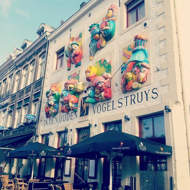 Mijn favo omgeturnde café tijdens carnaval is toch wel Café In Den Ouden Vogelstruys. De buitengevel valt meteen op als je komt lopen in de polonaise. Maar binnen is het nog leuker: door de vele carnavalstaferelen die er hangen, raak je niet snel uitgekeken: van carnavalsprinsen tot de bekende harmonieën van Maastricht.